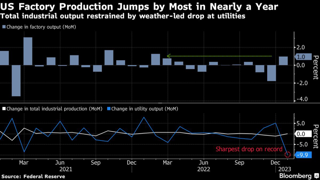 (Bloomberg) — Output at US factories rose in January by the most in nearly a year, suggesting improving supply chains and firmer demand are offering some relief for a still-challenged manufacturing sector.