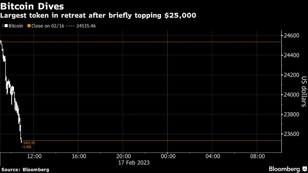Bitcoin erased declines that had sent it slumping more than 4% earlier in the session and appeared ready to once again breach the $25,000 mark. It pierced that level for the first time since August on Thursday.