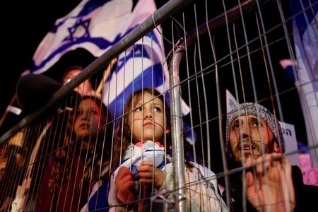 TEL AVIV (Reuters) – Tens of thousands of protesters returned to the streets of Israel on Saturday night to fight a plan to overhaul the country’s court system that the justice minister said he is determined to carry out.