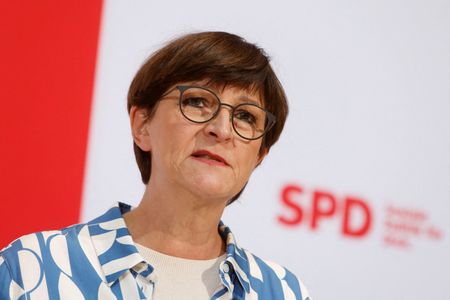 BERLIN (Reuters) – The co-chief of Germany’s ruling Social Democrats (SPD) is sceptical about NATO’s goal for each member to spend 2% of economic output on defence, according to a newspaper report, underscoring ambivalence in the country about bolstering the military.