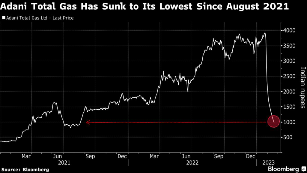 (Bloomberg) — Adani Group companies have erased about $135 billion of their total equity market value since the explosive Hindenburg Research report, but none has been hit as bad as Adani Total Gas Ltd.