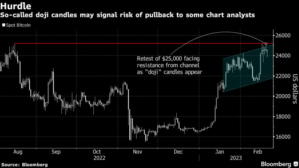 (Bloomberg) — The $25,000 level for Bitcoin is emerging as a key technical hurdle for the token’s partial bounce from last year’s crypto rout.