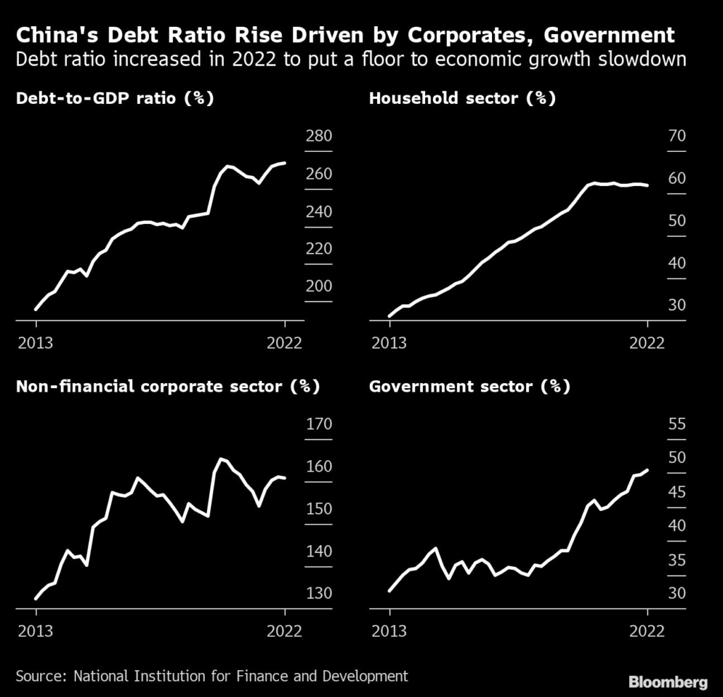 The macro leverage ratio — or total debt as a percentage of gross domestic product — rose to 273.2% as of the end of 2022 from 262.8% a year earlier, according to a commentary carried in the Economic Daily on Tuesday.