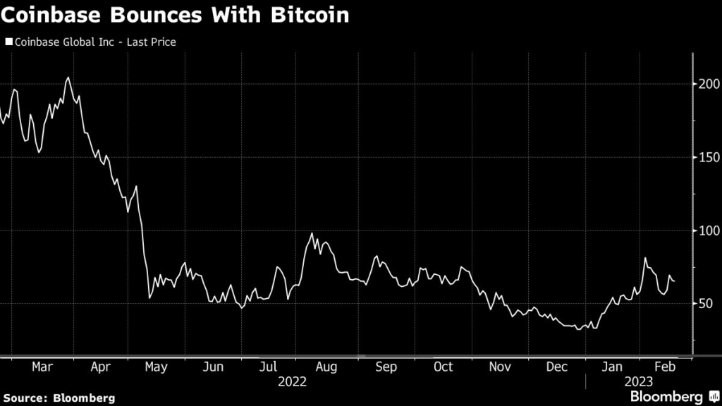 That’s after tumbling 85% in 2022. The stock is down about 80% from its closing record high in April 2021. Coinbase fell 1.6% to $64.19 as of 10:26 a.m. in New York.