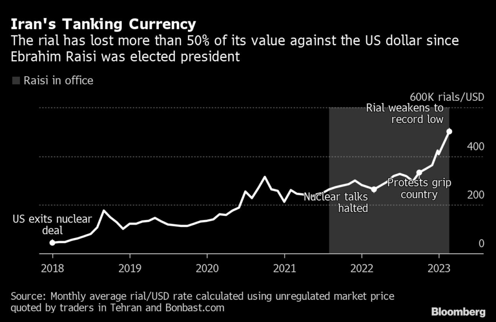 The latest currency turmoil comes as the heavily sanctioned leadership of the Persian Gulf state faces unprecedented levels of public dissent and is increasingly isolated from the global economy.