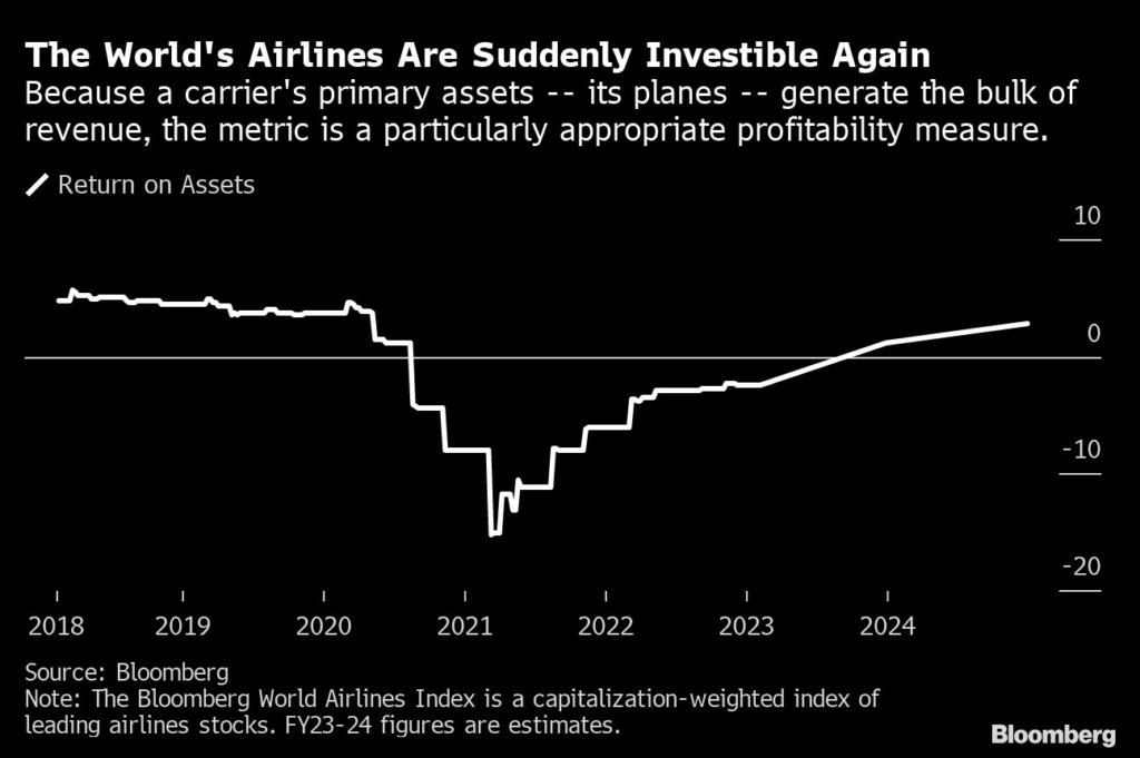 (Bloomberg) — Unloved during the pandemic with their business paralyzed almost overnight, airlines that cut back to survive the crisis are now blowing through profit forecasts and luring back investors.