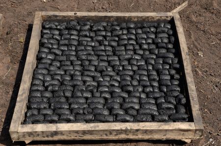 He and his employees collect, sort and dry the organic waste before burning it into a carbonised powder that is processed into briquettes and sold by the kilogram or in larger sacks.
