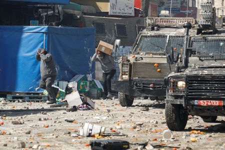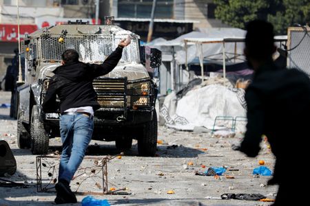NABLUS, West Bank (Reuters) -Israeli troops killed 11 Palestinians, including at least four gunmen and four civilians, and wounded over 100 others during a raid on a flashpoint city in the occupied West Bank on Wednesday, witnesses, militant groups and medical officials said.