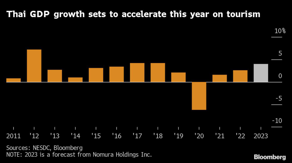 (Bloomberg) — Thailand’s economy is set to bounce back from a shock contraction in the fourth quarter as foreign tourist arrivals are likely to surprise on the upside and counter headwinds to merchandise exports from a global slowdown.