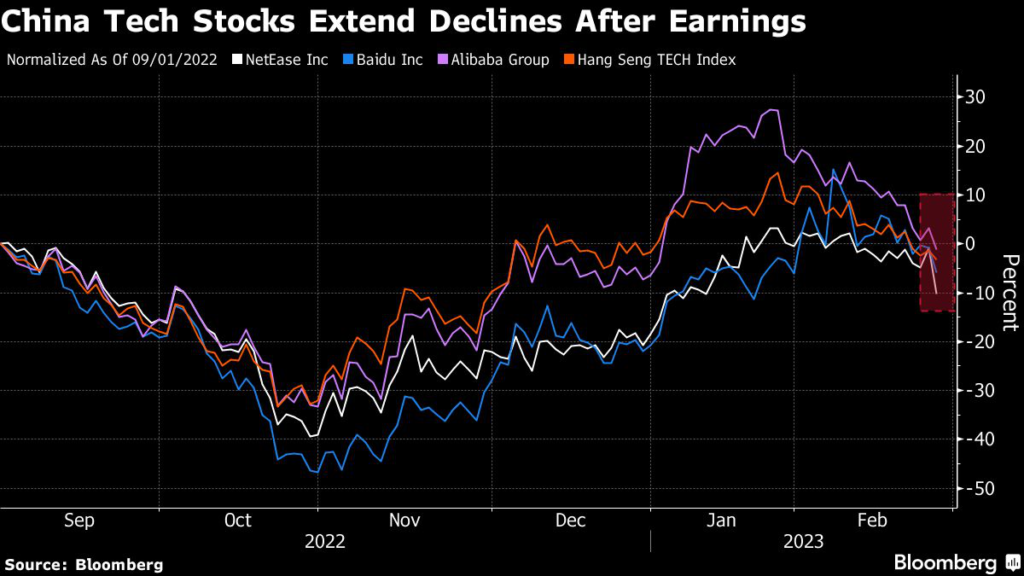(Bloomberg) — China’s technology stocks took a beating after more firms reported earnings, just when price wars and geopolitical tensions cloud the growth outlook for the sector.