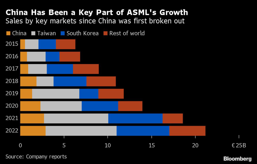 ASML’s home country will also prevent it from selling to China at least some immersion lithography machines, the most advanced kind of gear in the company’s deep ultraviolet, or DUV, lithography line, people familiar with the talks have told Bloomberg.