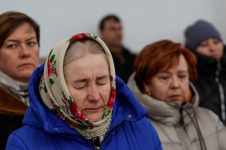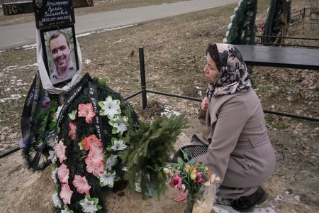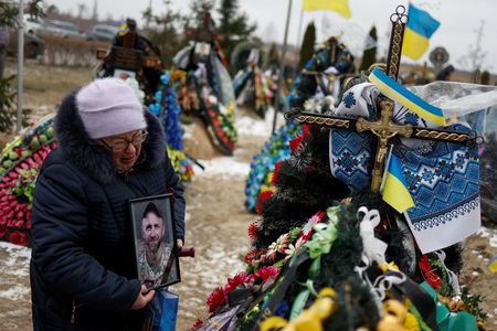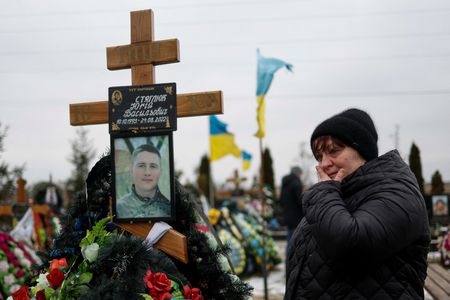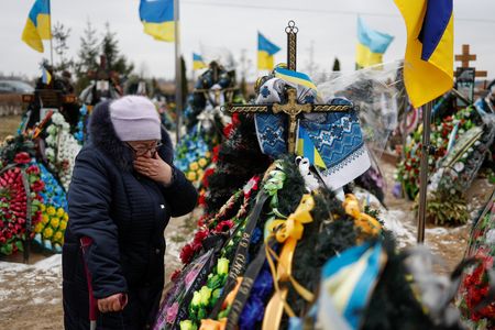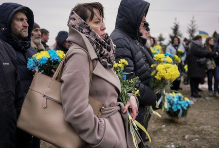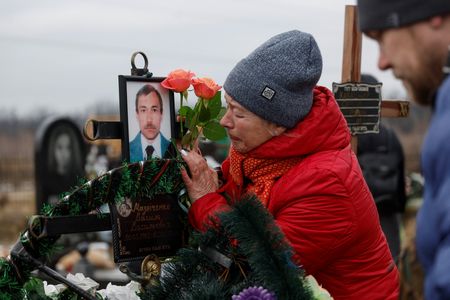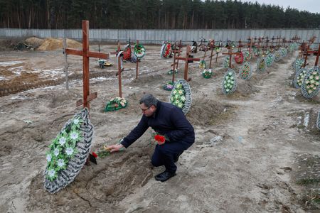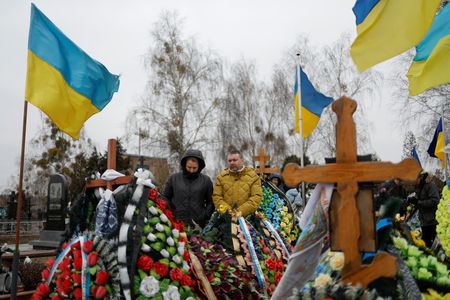 BUCHA, Ukraine (Reuters) – In Bucha, the town synonymous with Russian brutality during the war in Ukraine, two neighbours whose loved ones were killed in different parts of the country met at the local cemetery Friday to grieve and reflect as the conflict entered its second year.