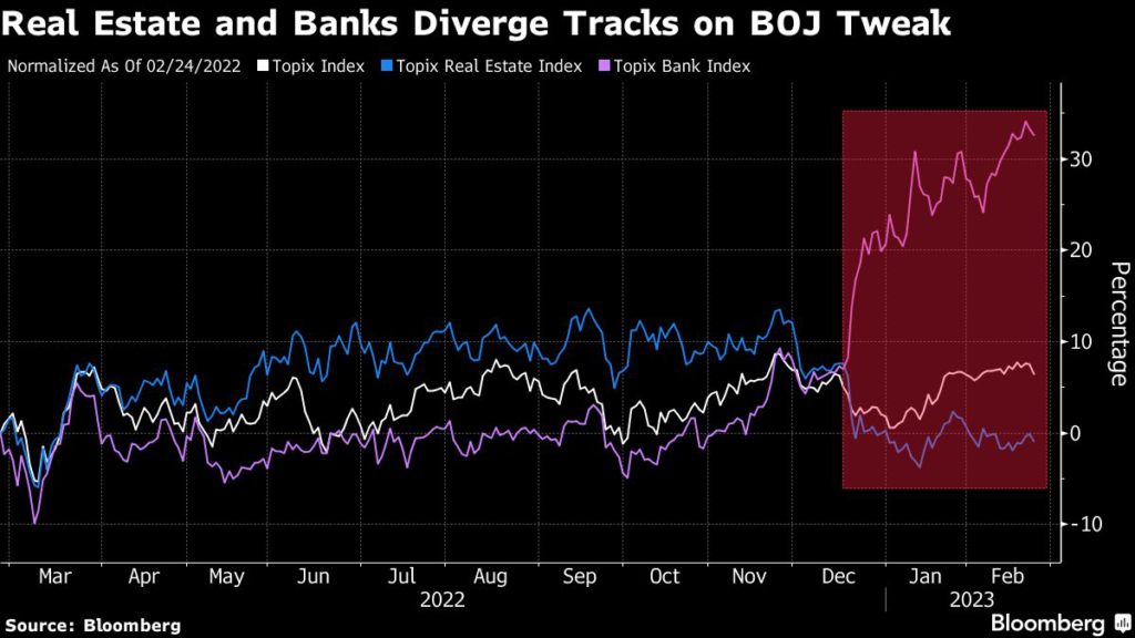 The BOJ’s shock decision in December to widen its bond yield cap and an upcoming leadership change have reshaped the stock market outlook, prompting a divergence in sector performance as investors gird for potentially higher rates.