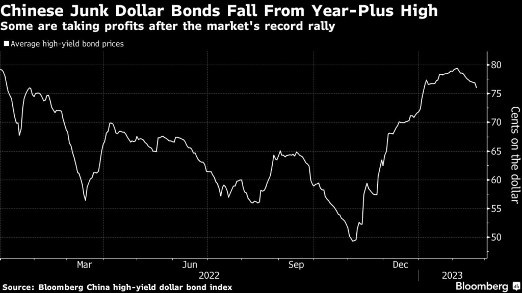 • One of Asia’s best-performing bond funds is looking for opportunities to pull back from Chinese developers’ offshore notes — and Asia’s junk-debt market more broadly — after raising its holdings during a record rally, Bloomberg’s Dorothy Ma reports.