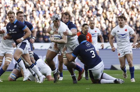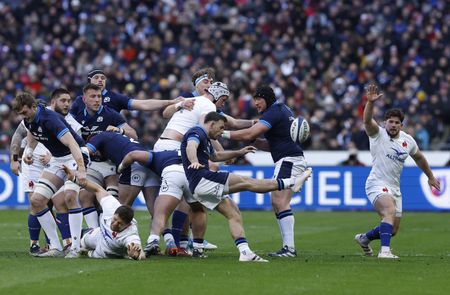 PARIS (Reuters) -France ended Scotland’s hopes of a Six Nations Grand Slam with a 32-21 victory in a high-octane, nail-biting clash with both sides reduced to 14 men early on at the Stade de France on Sunday.
