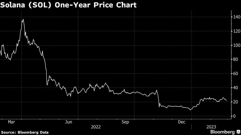 The price of SOL was hovering just below $22 as of mid-afternoon in New York, compared with near-record lows of around $10 in January.