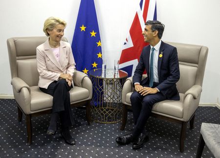LONDON (Reuters) -British Prime Minister Rishi Sunak will meet European Union chief Ursula von der Leyen on Monday in an effort to finalise a new deal for Northern Ireland’s post-Brexit trading arrangements.