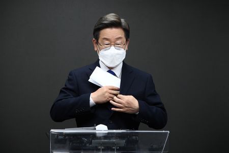 SEOUL (Reuters) – South Korean lawmakers on Monday narrowly voted down a motion to lift the parliamentary immunity of opposition leader Lee Jae-myung over corruption charges, fuelling criticism that his party abused its majority power to evade criminal investigations.