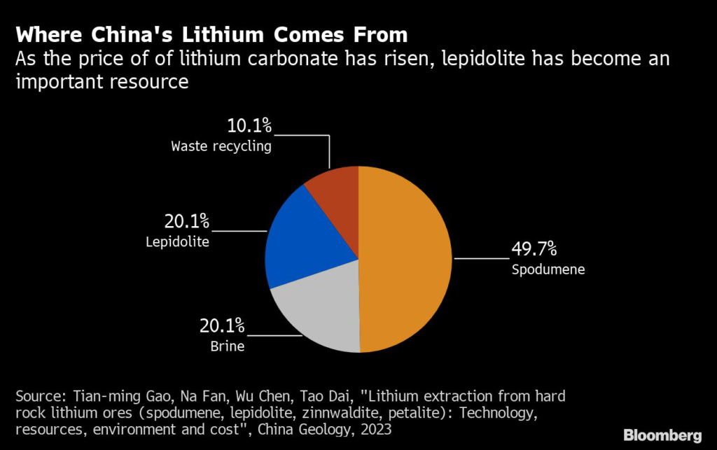 About a fifth of China’s lithium output was derived from lepidolite in 2021, according to an academic study published by the journal China Geology.