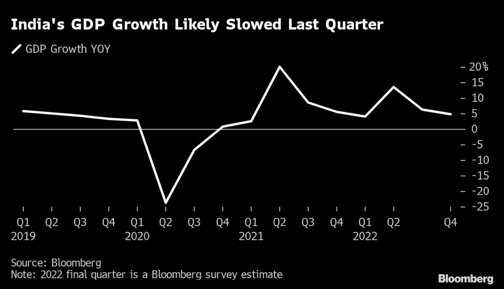 (Bloomberg) — India’s economic expansion likely slowed in the October-December period, as rising borrowing costs crimp consumption that’s a key growth driver.