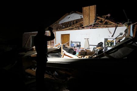 CHICAGO (Reuters) – Crews in central Oklahoma on Monday were assessing the damage and clearing debris left behind by a string of rare February tornadoes that roared through the area overnight, knocking out power to thousands of customers and injuring a dozen people.
