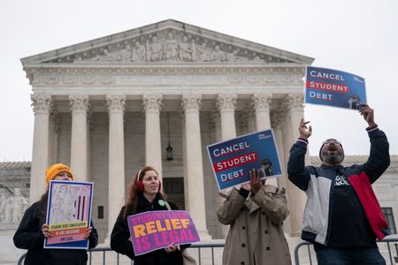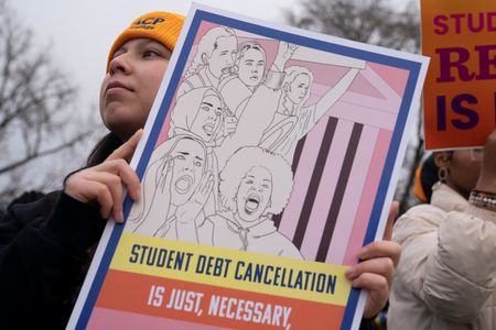 Hundreds of demonstrators including borrowers rallied behind Biden’s relief plan outside the court.