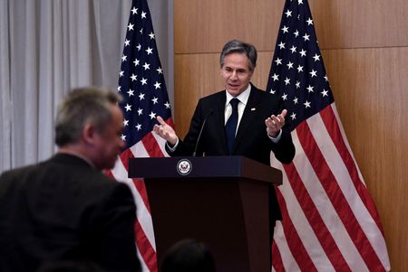 TASHKENT (Reuters) – U.S. Secretary of State Antony Blinken said on Wednesday that he has no plans to meet either the foreign ministers of Russia or of China during the Group of 20 (G20) meeting in New Delhi.