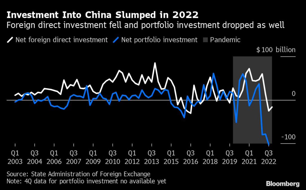 Overall inbound foreign investment dropped sharply in the second half of last year as the increasingly strict lockdowns dragged on economic growth.