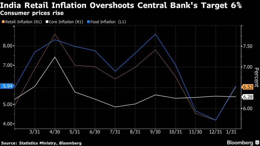 As the chances of a crop-damaging heat wave rise, this growth driver may take a hit. The government’s forecast for a record wheat and rice production this year is also at risk as deficient rains could keep domestic food costs elevated, complicating the job of the Reserve Bank of India that is seen hiking rates in April amid slowing demand.