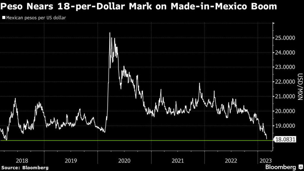 UBS expects the Mexican peso to reach the 18-per-dollar mark by the middle of the year, Alejo Czerwonko, chief investment officer for emerging markets Americas wrote in a note Tuesday.