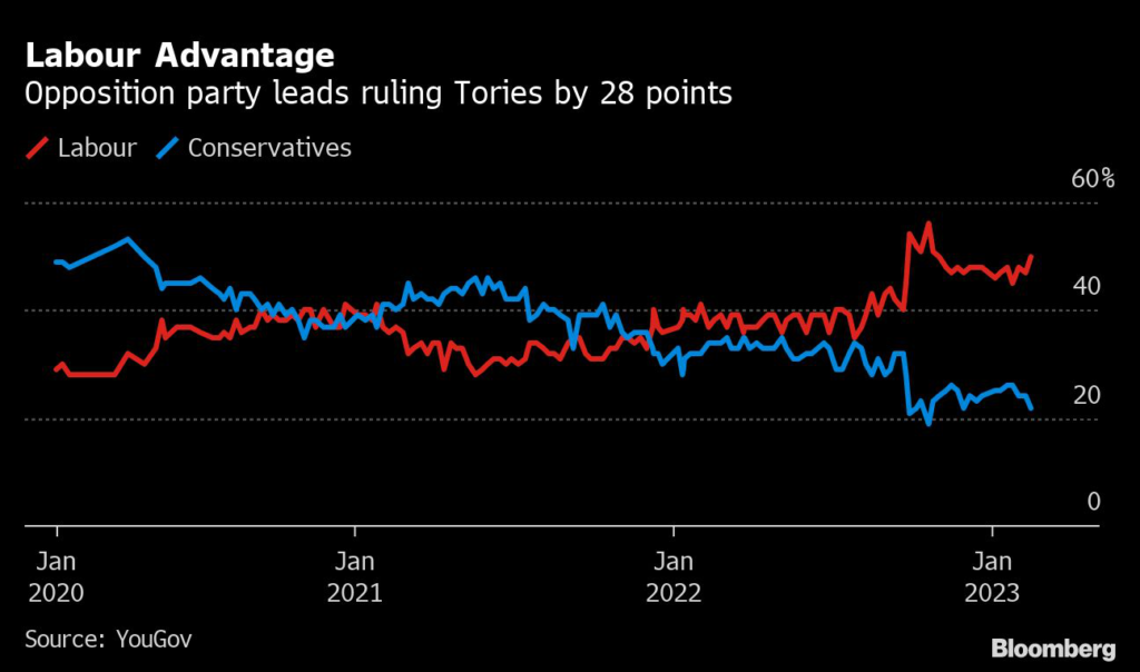 According to pollsters YouGov Plc, Sunak’s progress on Brexit is likely a major reason behind his rising ratings over the last two weeks, with the number of people holding a favorable view of the prime minister has seen a seven point increase, from 27% in mid-February to 34% now.