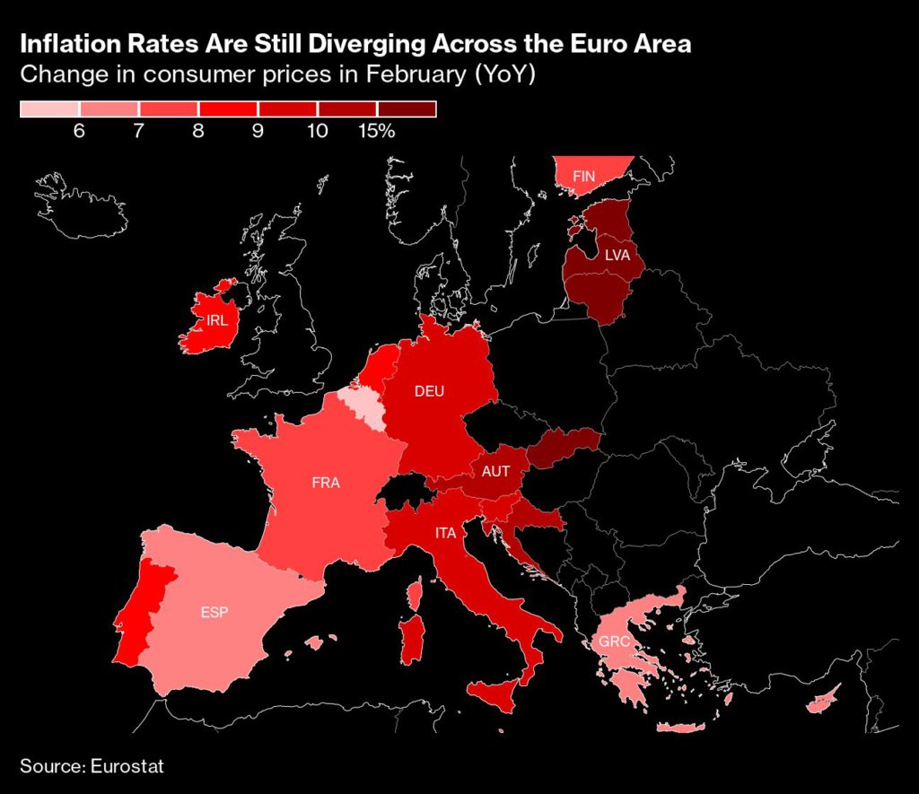 Headline inflation slowed only slightly to 8.5%, above economist forecasts compiled last week that were quickly overshadowed by surprisingly high outcomes in Germany, France, Italy and Spain.