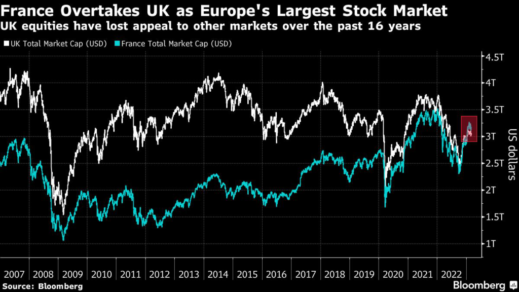 The UK lost its crown of Europe’s largest stock market to France last year, another blow to the dominance of British finance. As a comparison, the US stock market more than doubled in size over the same period, growing its total maker capitalization from $19 trillion to $43 trillion, according to data compiled by Bloomberg.