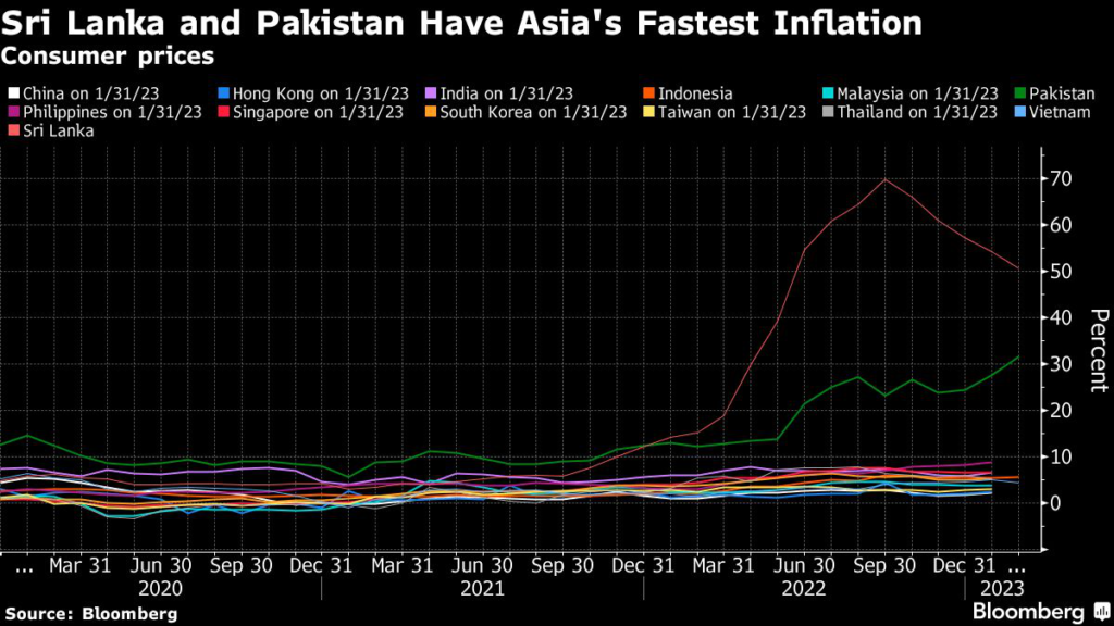 (Bloomberg) — Borrowing costs hovering at two-decade highs to quell Asia’s fastest inflation rates will be in focus Friday in Sri Lanka after Pakistan raised the policy rate to the highest in 25 years, with both economies looking to win bailouts from the International Monetary Fund.
