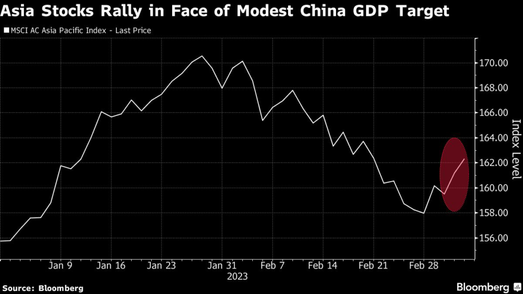 (Bloomberg) — Global markets are taking China’s modest growth target in their stride, indicating that investors see merit in Beijing’s attempt to revive the world’s second-biggest economy without it overheating.