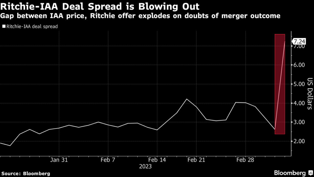 Ritchie, a Canadian firm that sells heavy equipment at auctions around North America, announced its bid in November to buy IAA, which sells damaged and written-off vehicles.