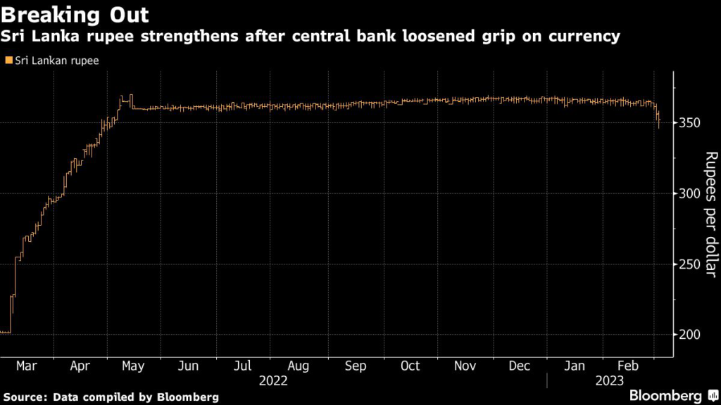 (Bloomberg) — Sri Lanka’s rupee rallied by the most in over three decades and stocks surged as China’s support for the nation’s debt plan and the central bank’s move to scrap the currency trading band boosted optimism over an International Monetary Fund bailout.