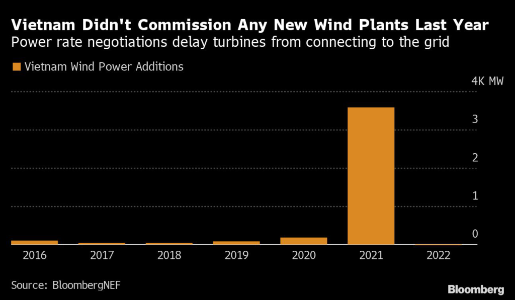 Vietnam’s wind imbroglio dates back to 2018 when it drove massive interest in the sector by agreeing to buy power at high rates via a system called a feed-in tariff.