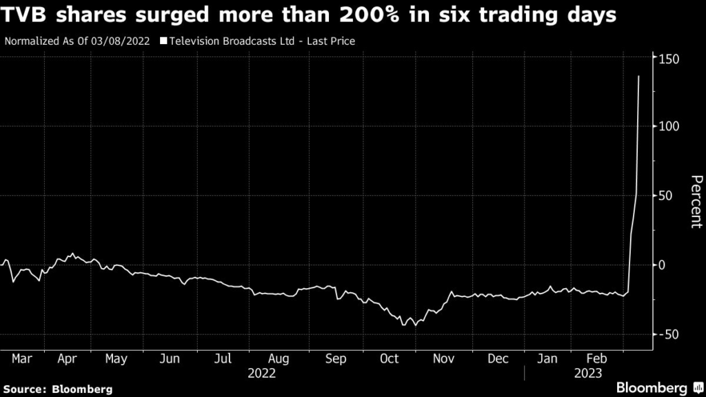 (Bloomberg) — One of Hong Kong’s leading broadcasters, Television Broadcasts Ltd., saw its shares almost double after its stars began selling products on the Alibaba-backed Taobao online platform.