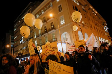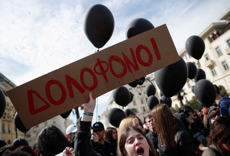 ATHENS (Reuters) -Tens of thousands of people took to the streets of Greece on Wednesday and workers went on strike in the biggest show of public anger yet over the country’s deadliest train disaster that killed 57 people last week.