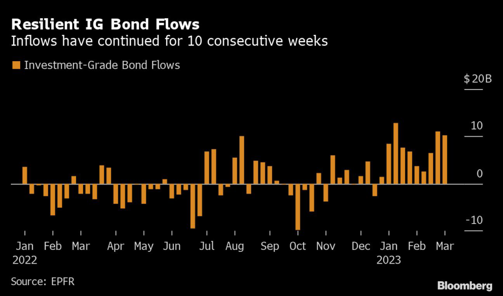 So far this year, global investment-grade credit funds have absorbed almost $70 billion, making it the biggest inflow for this part of the year since EPFR Global started tracking the data in 2017.