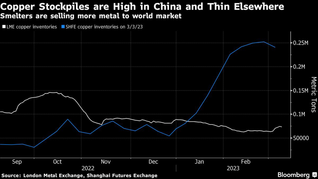 China is a big net importer of copper, but refined metal occasionally flows out in larger volumes when there’s imbalances with the global market.