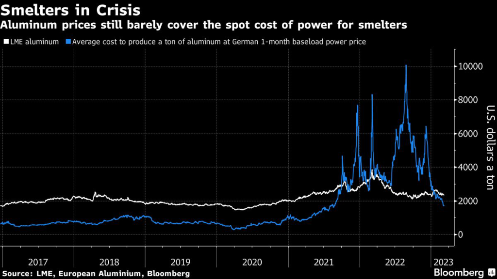 Another European aluminum smelter is closing, in a fresh sign of the damage wrought by an energy crisis that’s hammered the region’s industrial economy and crimped supplies of critical raw materials.