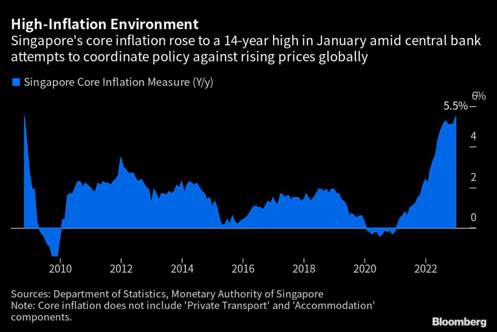 The Fed’s preferred inflation measures unexpectedly accelerated in January and remains way above the central bank’s 2% target, a situation that plays out in other jurisdictions including Singapore.