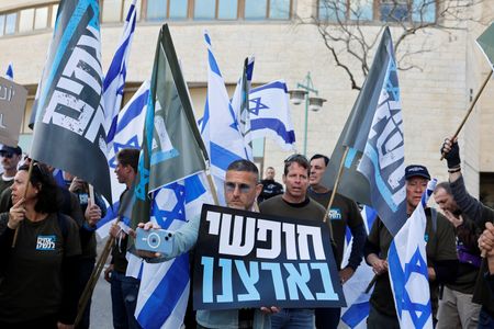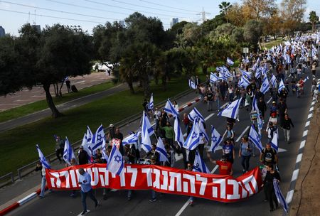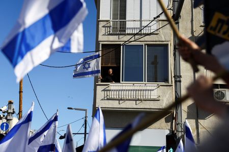 In Jerusalem, a group of protesters used sandbags and barbed wired to barricade the offices of the Kohelet Policy Forum, a think-tank that has advocated for the government reforms, Reuters video showed.