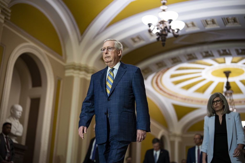 (Bloomberg) — Senate Minority Leader Mitch McConnell suffered a concussion after a fall Wednesday evening and is being treated at a Washington-area hospital, his office said Thursday.