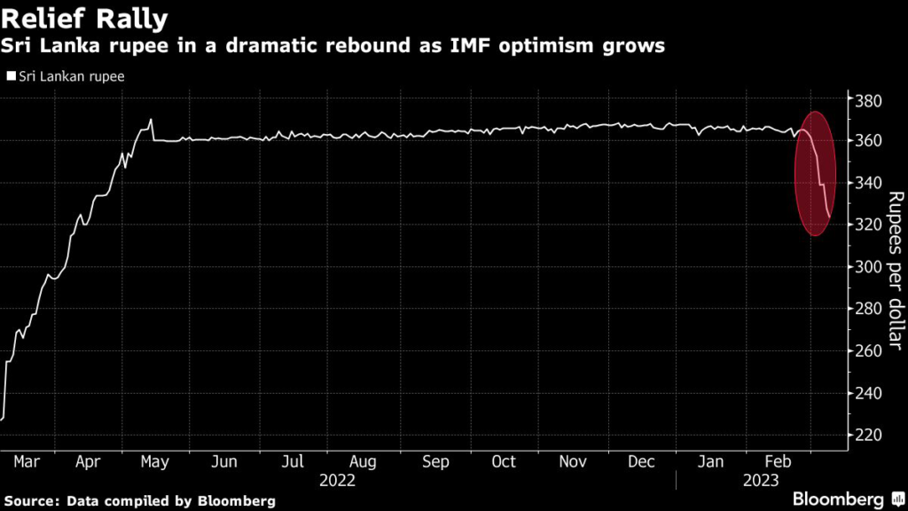 The rupee advanced 0.5% to 316.8 per dollar on Thursday, taking its annual gain to 14%. That’s after the IMF said it will decide on a $2.9 billion bailout for Sri Lanka on March 20 following China’s assurance that it will support the nation’s debt restructuring.
