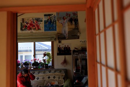 His bright main room contains pots of pink geraniums and a photograph of Ono taking part in the 2021 Olympic torch relay.