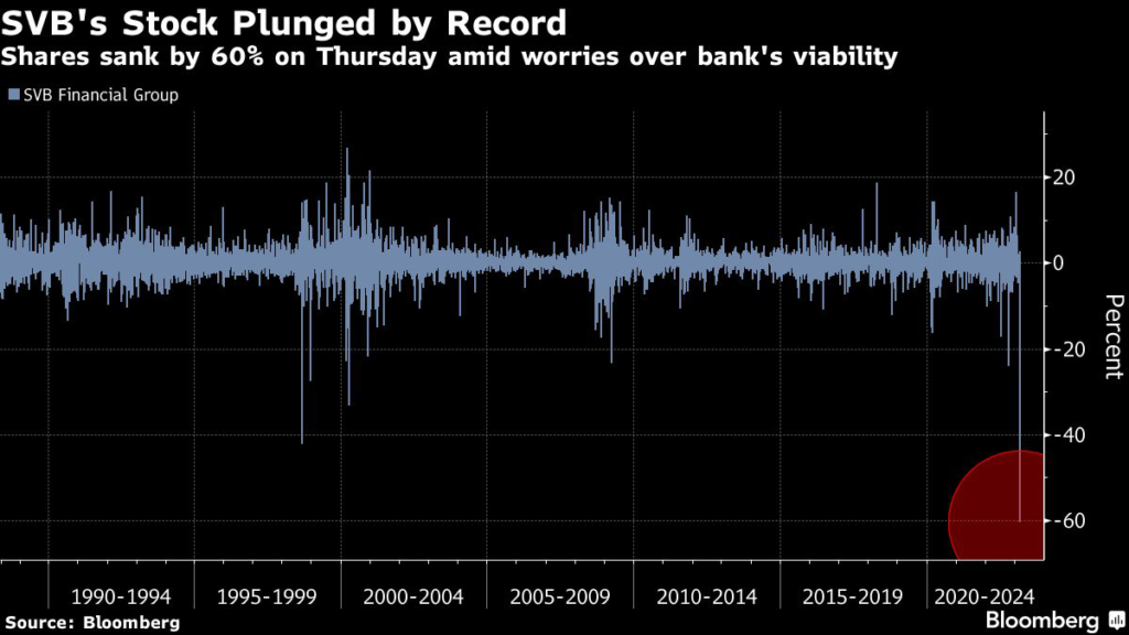 SVB shares plunged by 60% on Thursday as worries mounted over the bank’s operation, netting traders who bet against the stock a one-day mark-to-market profit of roughly $513 million.