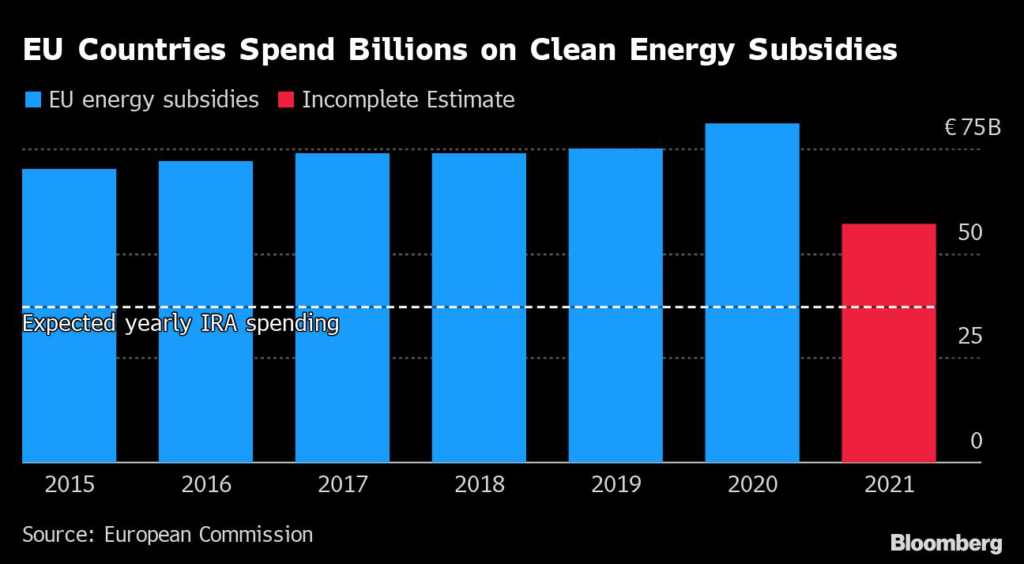 The EU has been seeking concessions from the law, known as the IRA, which will offer as much as $369 billion in handouts and tax credits over the next decade for clean-energy programs in North America.